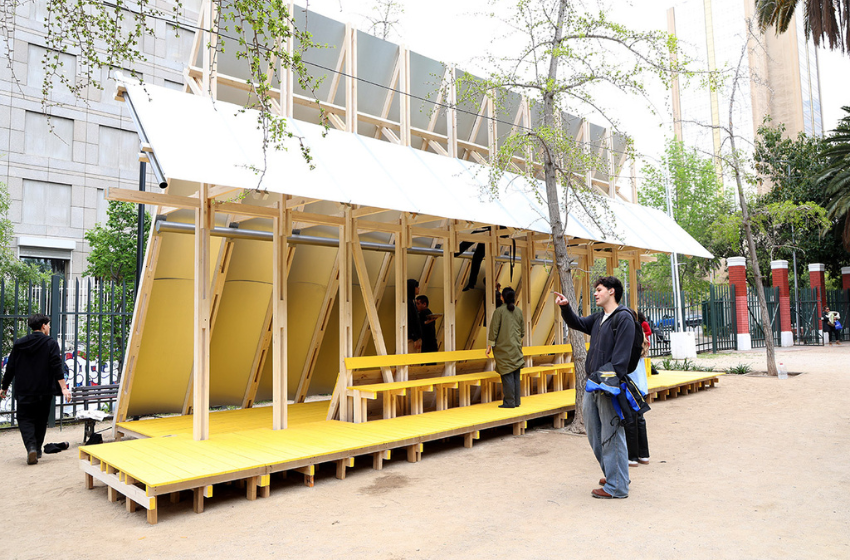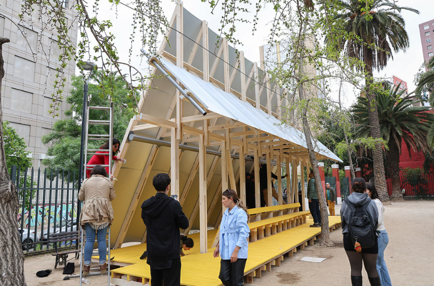 El equipo triunfador del reciente Concurso de la Escuela de Arquitectura construyó en tres días su propuesta de un pabellón que permitió realizar conversatorios y eventos relacionados a la Bienal de Arquitectura, que culminó este domingo 5 de octubre. "Fue como un regalo temporal para los usuarios del parque", dijo el profesor integrante del grupo, Marco Beovic.