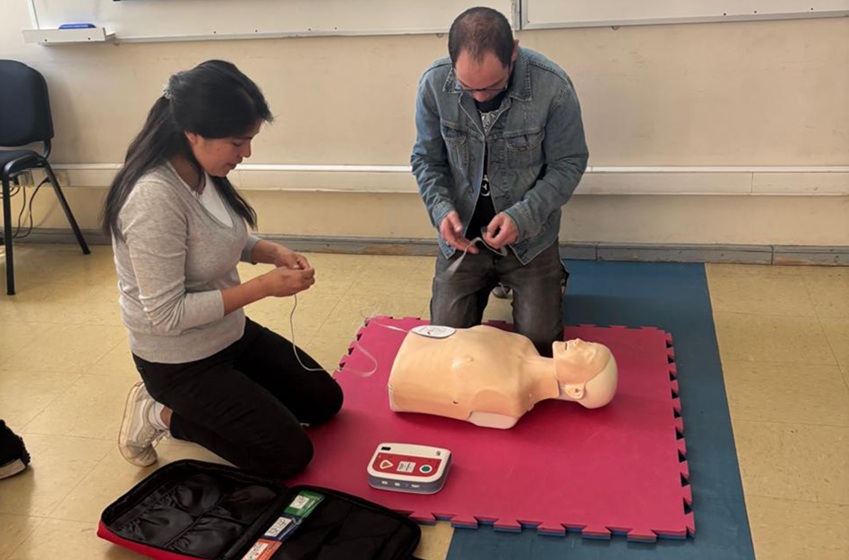 Los contenidos del taller incluyeron maniobras de Reanimación Cardiopulmonar (RCP), uso práctico del Desfibrilador Externo Automático (DEA), evaluación de signos vitales, y recomendaciones ante Ataque Cerebrovascular (ACV), Síndrome Coronario Agudo (SCA) y Paro Cardiorrespiratorio (PCR).