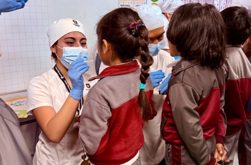 Cien estudiantes de primer año de la Escuela de Odontología participaron en cuatro jornadas preventivas para niñas y niños, de entre 4 y 6 años, reforzando su formación en terreno y el vínculo histórico de la Universidad con la comuna y el programa ministerial que este 2025 cumplió una década.
