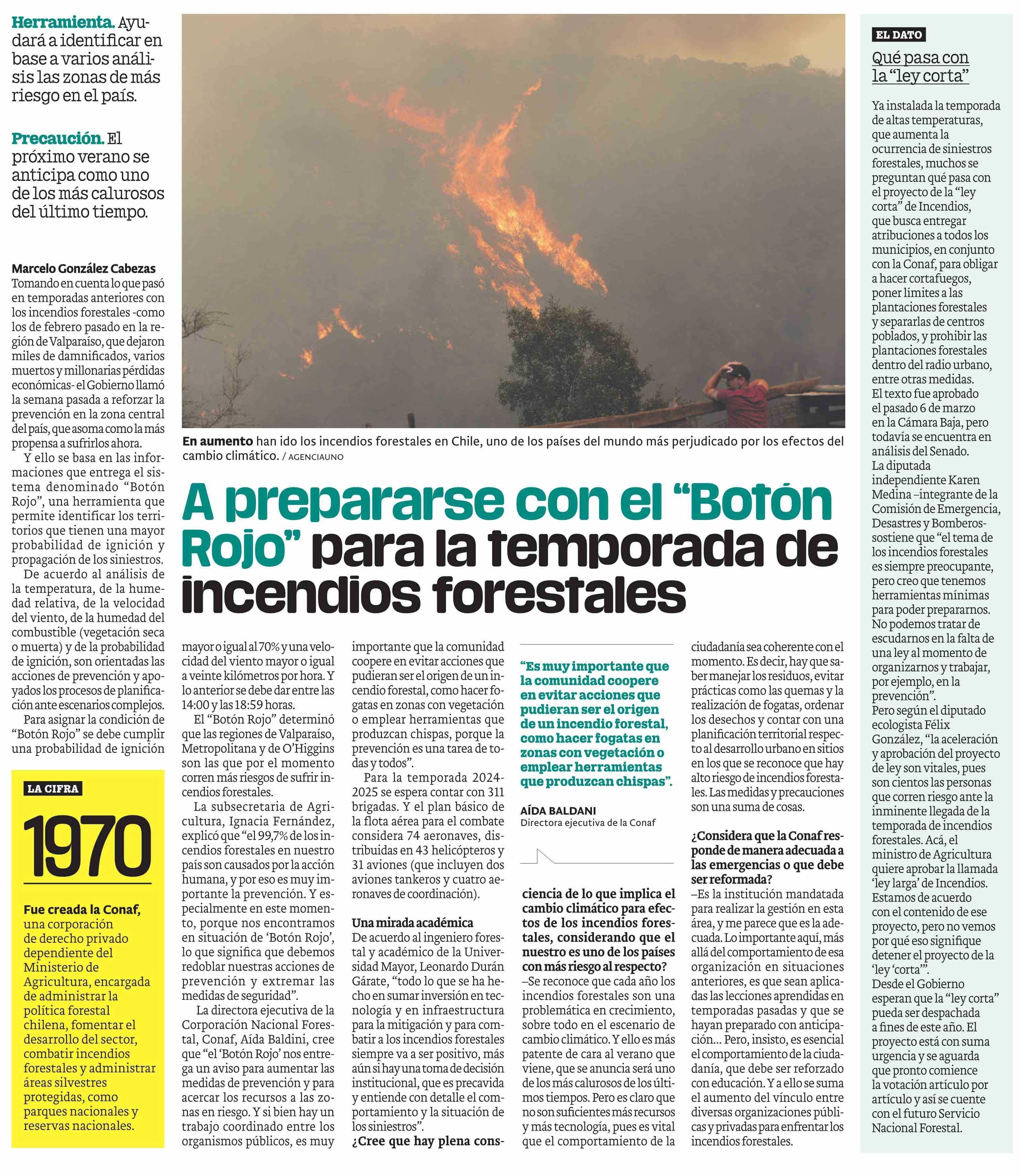 Leonardo Durán, de Ingeniería Forestal, destaca el aumento de inversión en tecnología y en infraestructura para la mitigación, "más aún si hay una toma de decisión institucional que es precavida y entiende el comportamiento y la situación de los siniestros”. Por ello, agregó que "es muy importante que la comunidad coopere en evitar acciones que pudieran ser el origen de un incendio forestal". Leer nota aquí