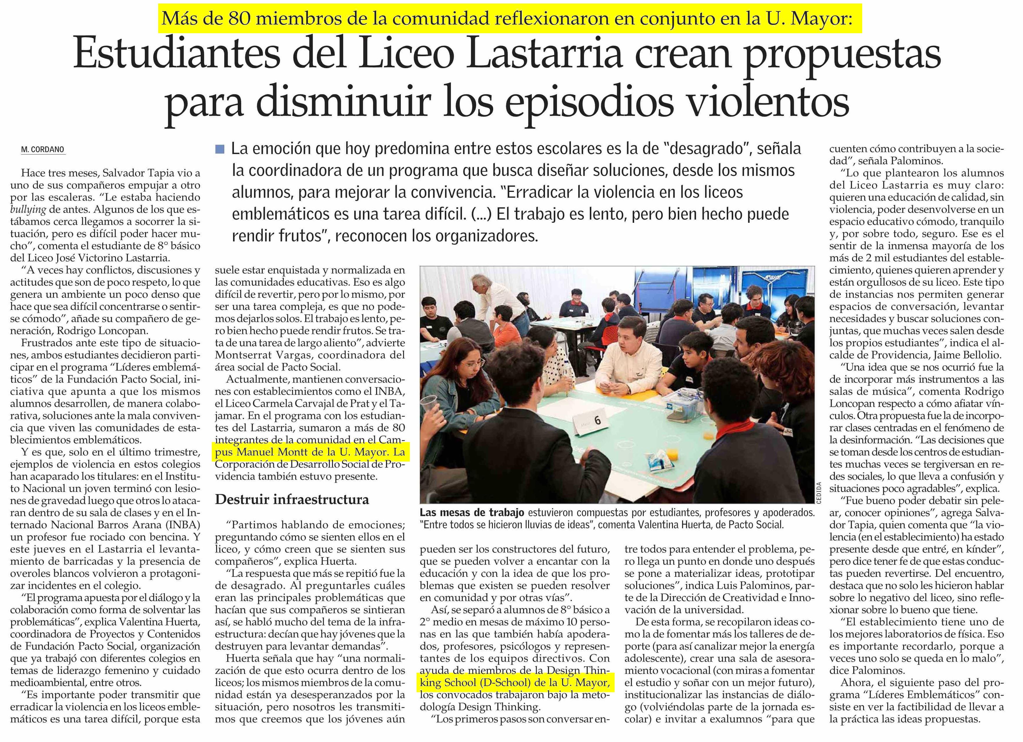 En el campus Manuel Montt, y junto a monitores de la D-School U. Mayor, más de 80 miembros de la comunidad reflexionaron en mesas de trabajo que estuvieron compuestas por estudiantes, profesores y apoderados. Revísalo aquí.