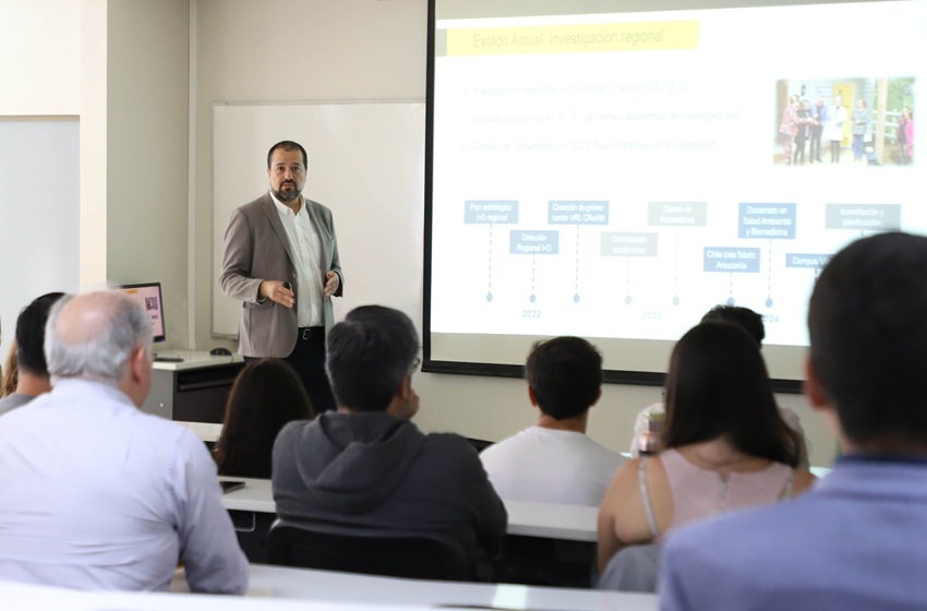El director regional de Investigación, Dr. Mario Sanhueza, ahondó en el Plan de Desarrollo de Capacidades de I+D generado en la primera etapa del programa financiado por el ministerio de Ciencia, Tecnología, Conocimiento e Innovación.