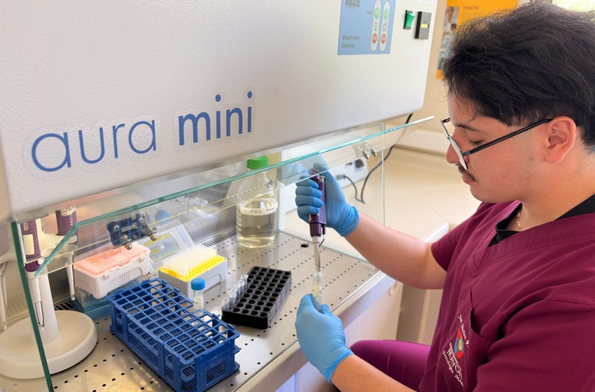 José Miguel Muñoz, futuro tecnólogo médico de la sede Temuco, busca aportar al campo de la reproducción animal y ahondar en los mecanismos celulares que determinan la viabilidad espermática, a través de un estudio en porcinos.