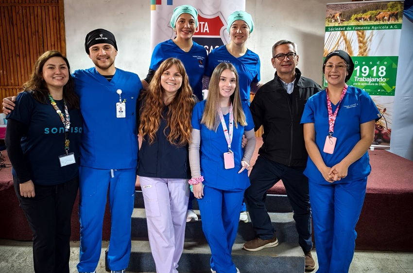 Los futuros odontólogos fueron parte de la iniciativa organizada por la Sociedad de Fomento Agrícola de La Araucanía, en conjunto con Fundación Sonrisas y la Municipalidad de Vilcún, aportando con acciones de prevención, promoción y recuperación de salud bucal.