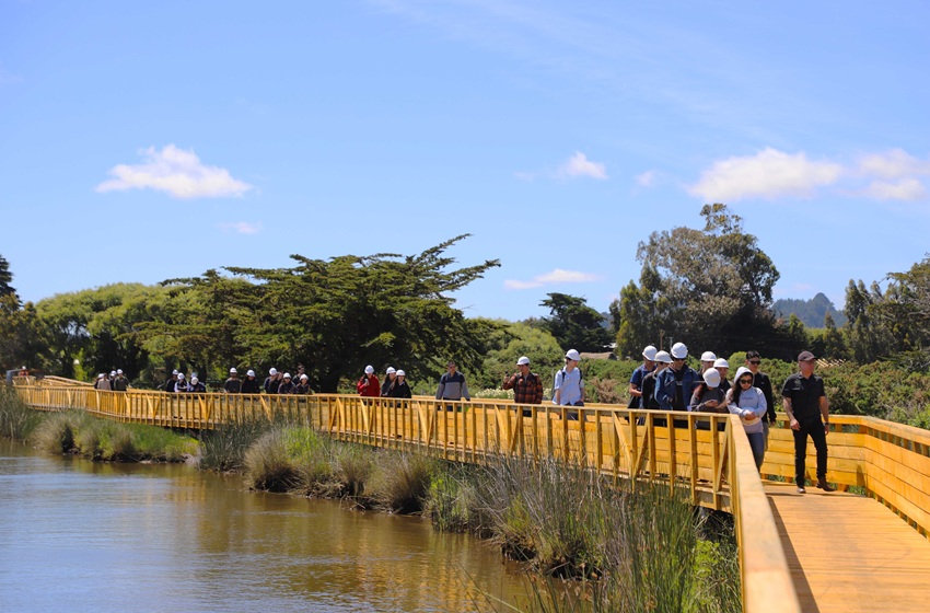 Estudiantes de la sede Temuco recorrieron las obras de la pasarela que será inaugurada en el único sitio Ramsar de La Araucanía, un lugar protegido por la riqueza y particularidad de su ecosistema y por la importancia para la vida diaria y la cultura de esta zona costera de la comuna de Carahue.