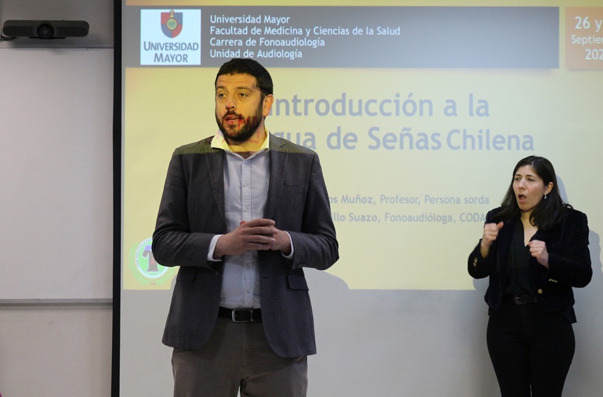 “Buscamos abrir espacios que sean significativos para quienes trabajan en salud, para que, posteriormente, lo aprendido pueda ser puesto en práctica y beneficie a las personas. Sabemos que existe una barrera comunicativa y la intención de este curso es que, de manera inicial, puedan aportar a disminuir esa barrera comunicativa”, señaló Nicolás Araise, director de Fonoaudiología.