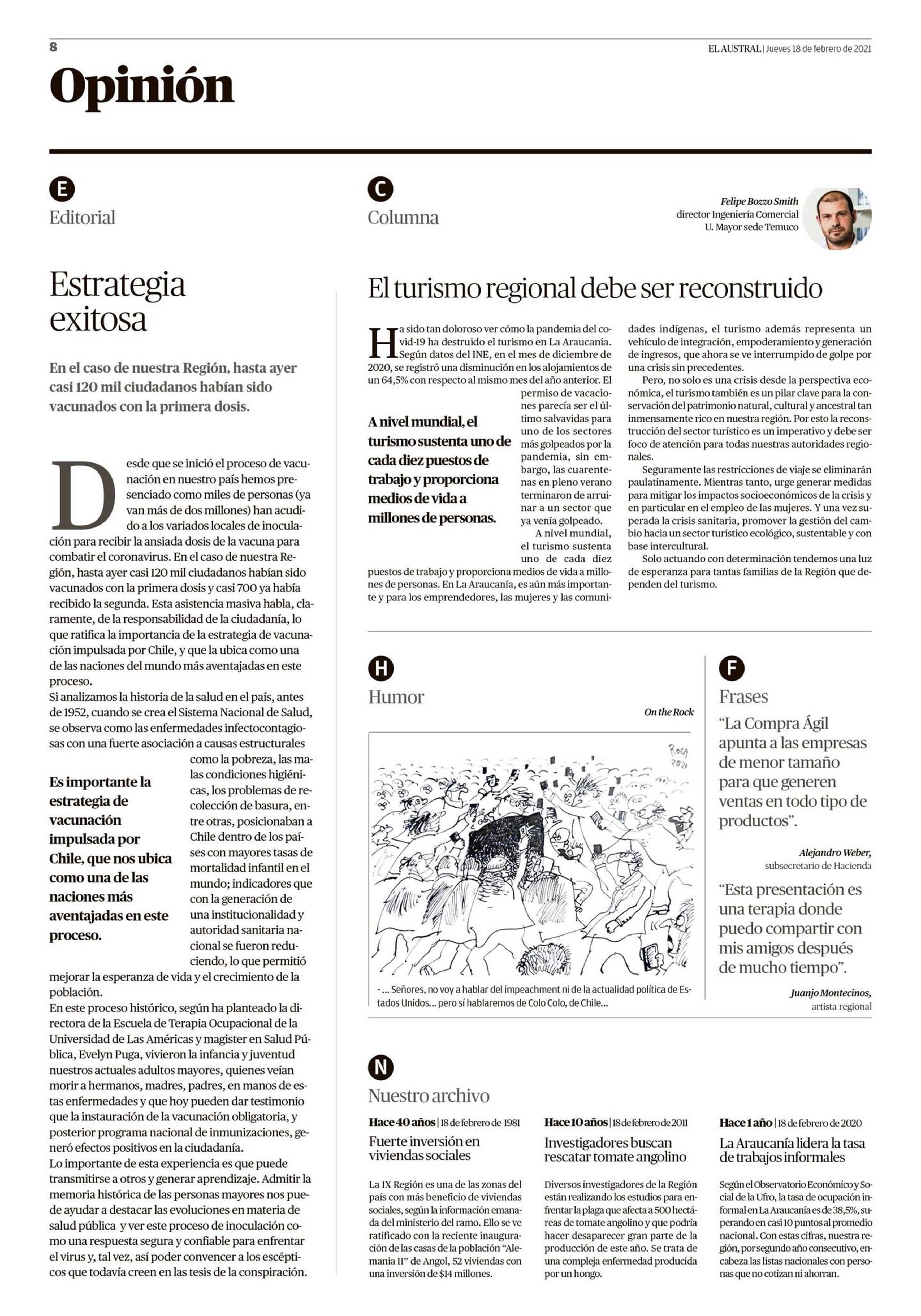 Columna de opinión publicada por El Austral de La Araucanía el 18 de febrero de 2021.