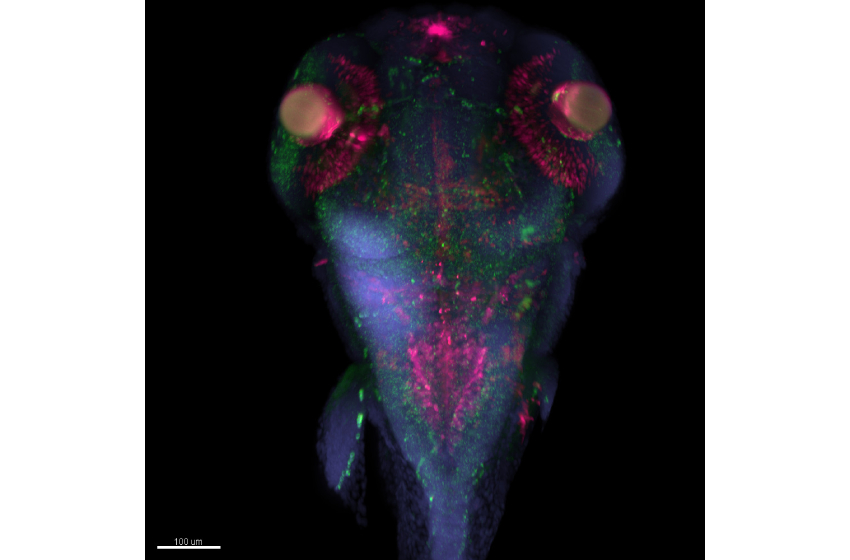 Los estudiantes compitieron con la foto de un embrión de Pez Cebra de 3 días post fertilización, la que fue tomada con el microscopio Ligh-sheet ubicado en el campus Huehuraba y que desde 2021 es unos de los pocos de su tipo en Sudamérica.
