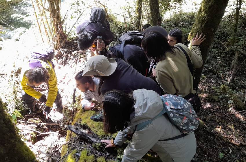 El plan de trabajo de los once alumnos chilenos, más uno de intercambio de la U. de Cauca de Colombia, permitió que las y los estudiantes pudieran aplicar y discutir en terreno lo aprendido en las aulas, y generar información sobre las especies arbóreas que existen en el parque para estudiar su potencial de regeneración.