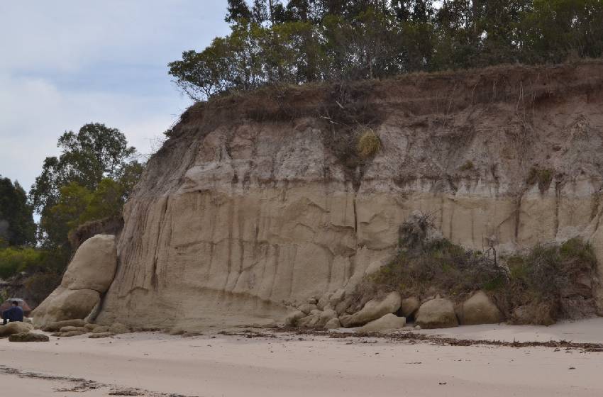 El profesor Ugalde cuenta que “en esta playa encontramos muchos túneles fósiles que pertenecen a organismos de gran tamaño. En ese tiempo existía una especie de armadillo de gran tamaño, llamado gliptodonte, que era del porte de una oveja; también había perezosos que eran de gran tamaño, pensando en la preservación de las madrigueras. En general, es difícil preservar una huella fósil y además una madriguera”.