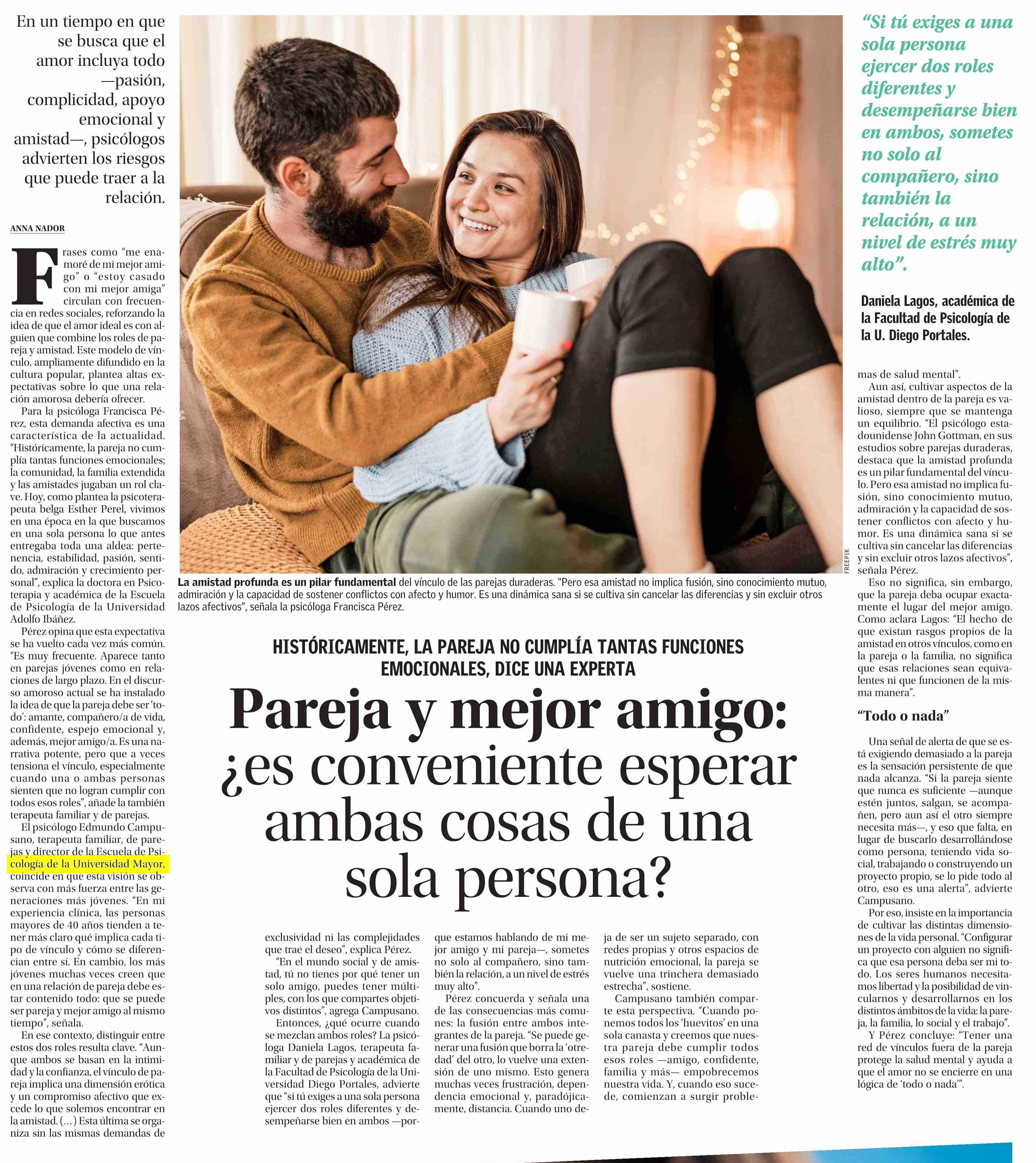 Edmundo Campusano, director de Psicología U. Mayor, explica que esta visión se observa entre las nuevas generaciones. “En mi experiencia clínica, las personas mayores de 40 años tienden a tener más claro qué implica cada tipo de vínculo y cómo se diferencian entre sí. En cambio, los más jóvenes muchas veces creen que en una relación debe estar contenido todo al mismo tiempo”, señala. Leer nota aquí.