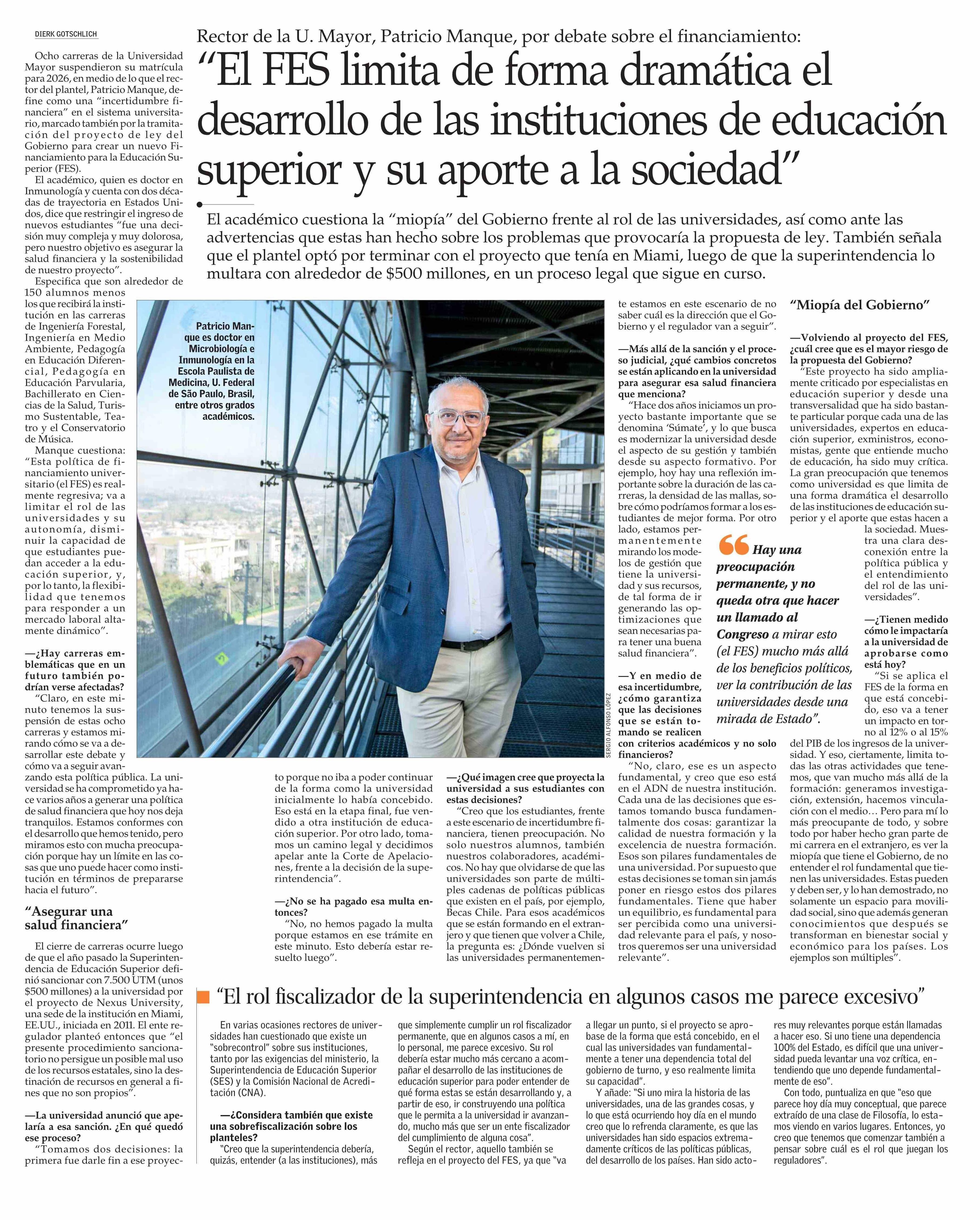 El académico cuestionó la "miopía" del Gobierno frente al rol de las universidades, así como ante las advertencias que estas han hecho sobre los problemas que provocaría la propuesta de ley. “Hay una preocupación permanente, y no queda otra que hacer un llamado al Congreso a mirar esto (el FES) mucho más allá de los beneficios políticos y ver la contribución de las universidades desde una mirada de Estado", dijo. Revísalo aquí.