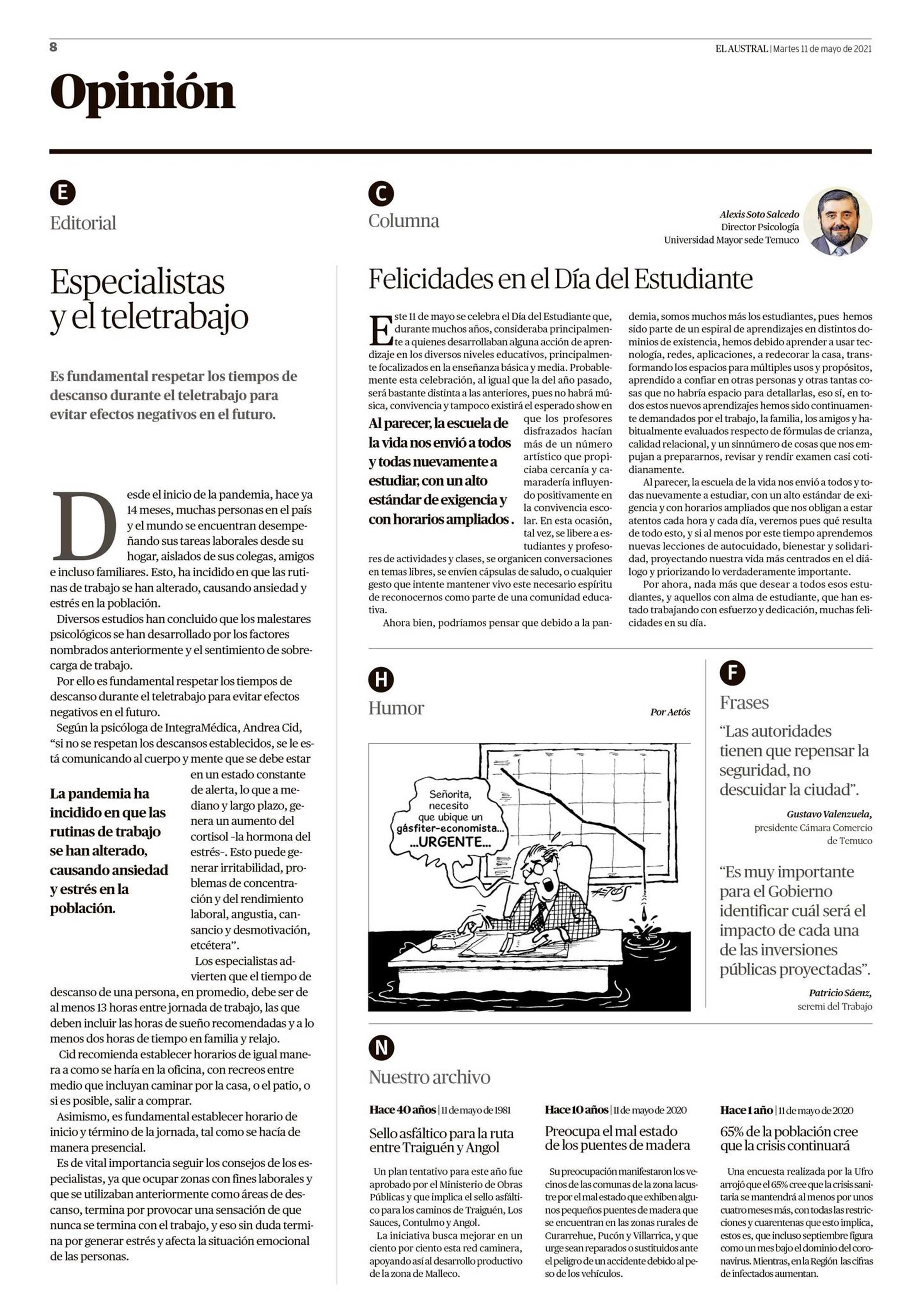 Columna publicada por El Austral de La Araucanía el 11 de mayo de 2021.